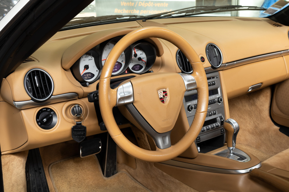 Proposée en option avec la boîte automatique Tiptronic S, ce Boxster S est animée par un moteur Flat-6 atmosphérique de 3,4L, développant 295 ch.